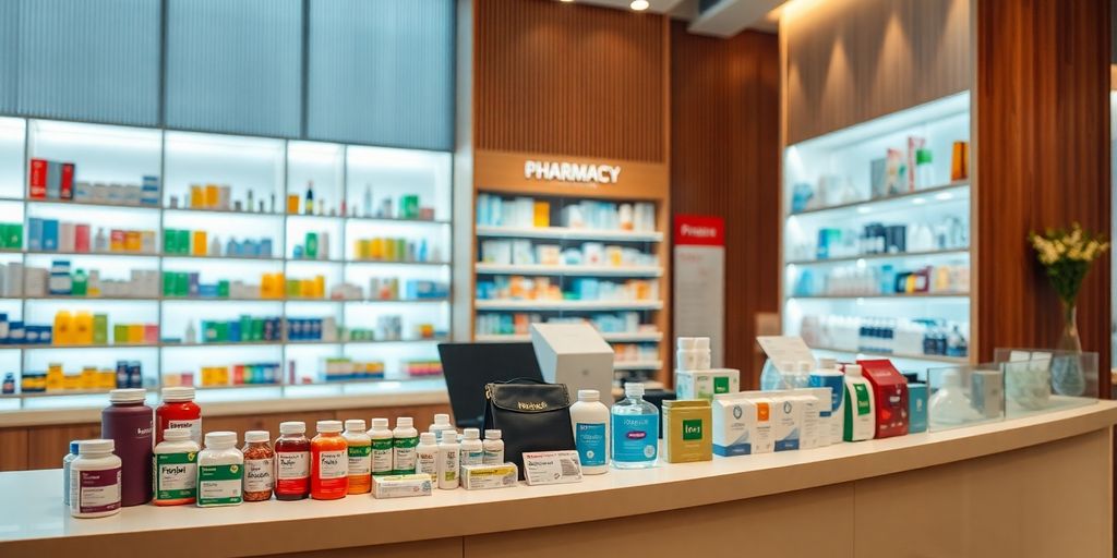 - Ein breites Sortiment deckt alles von Erkältungsmitteln über Pflegeprodukte bis hin zu Nahrungsergänzungsmitteln ab.